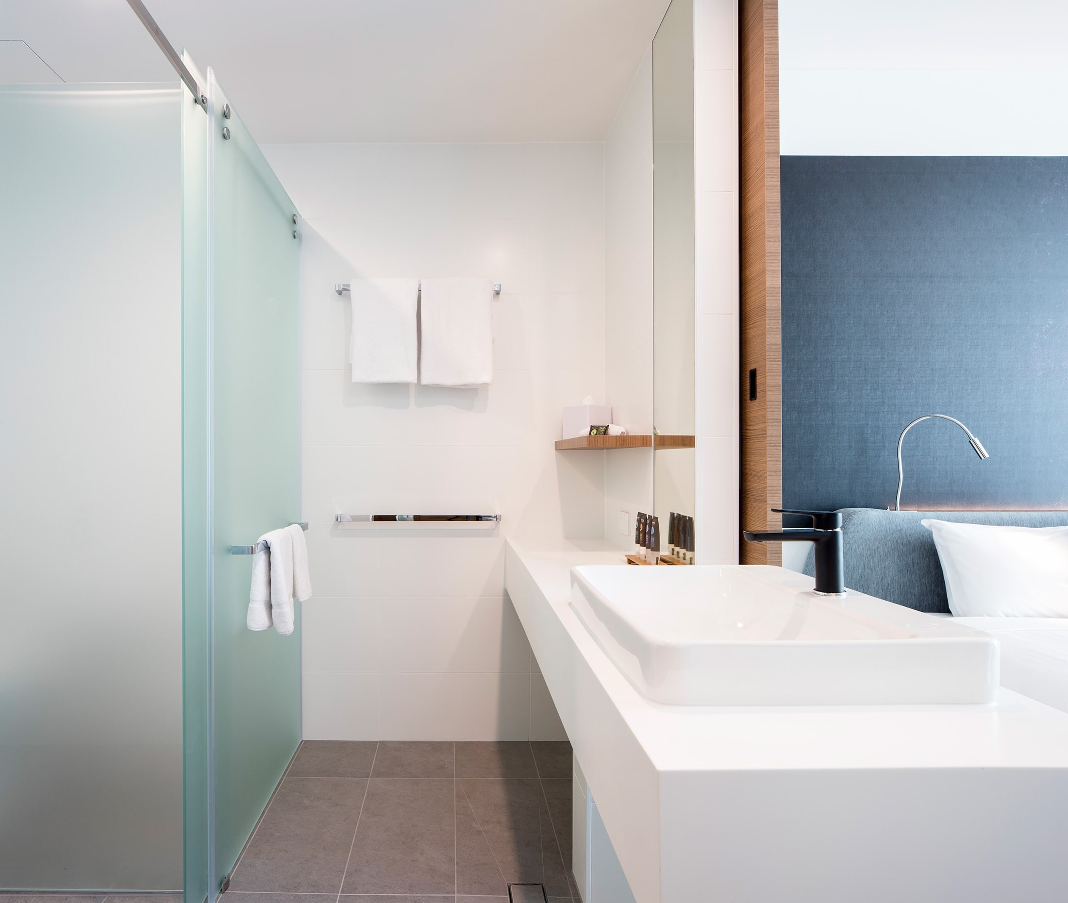 Our Superior ‘N’ King Bed Rooms or Superior ‘N’ Double Rooms with two double beds are perfect for business and leisure travellers alike. Elevated away from the streets below the floor to ceiling windows bring the lights of the surrounding city into these modern spaces, whether it be overlooking the green oasis of Musgrave Park or the cityscape beyond the river. Novotel’s own Live N’ Dream beds, fluffy duvet and custom comfort pillows will help you wake refreshed. The King room sleeps up to two adults. The Double rooms offer the same comfort but with two double beds, sleeping up to two adults and two children. Keep connected during your stay with Smart TVs, Wi-Fi, broadband and USB ports.