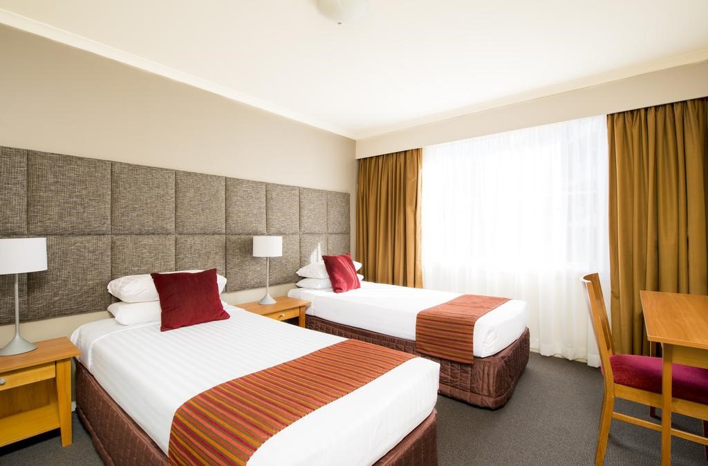 Standard twin rooms have two double size beds, mini bar, tea/coffee making facilities, internet access (for a fee), pay per view movies and climate control air-conditioning.