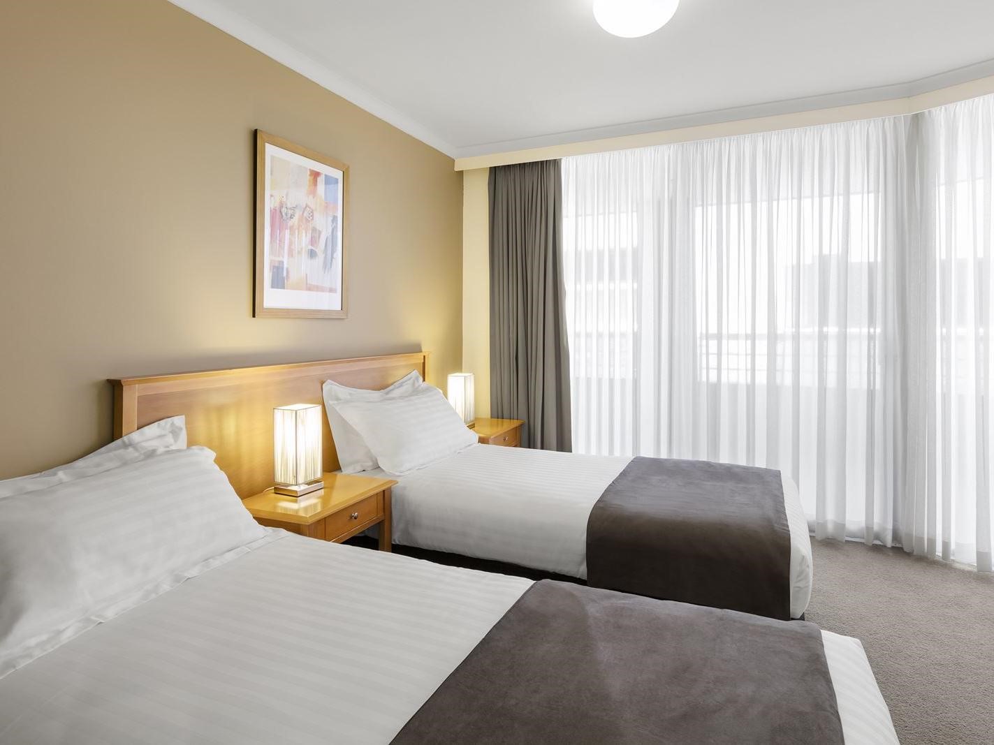 All twin rooms have two single beds, kitchen and laundry facilities, in-room safe, dining table and chairs, complimentary cable TV, pay per view movies and high speed internet service (for a fee).
